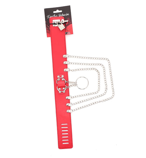 This red collar with chain is designed for adult use, combining style and functionality. Crafted for durability and comfort, it offers secure restraint while enhancing intimate experiences. Its bold color and sturdy chain make it a versatile accessory for those exploring power dynamics safely and confidently.