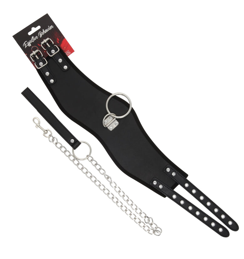 This collar instantly ensures the wearer feels bound and controlled. It is designed to ensure the sub maintains a good posture and keeps their head up. The restriction of movement is a constant reminder to the submissive of their place. It features a strong O-ring to attach the accompanying leash.