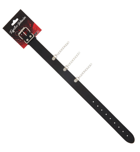 Add a little flair to your kinky playtime with this drop-chain collar by 53X! Made of smooth premium PVC , the band features three delicate chains hanging from the front as a finished look or for you to add your own charms. The back fastens with an adjustable buckle for a perfect fit.