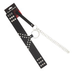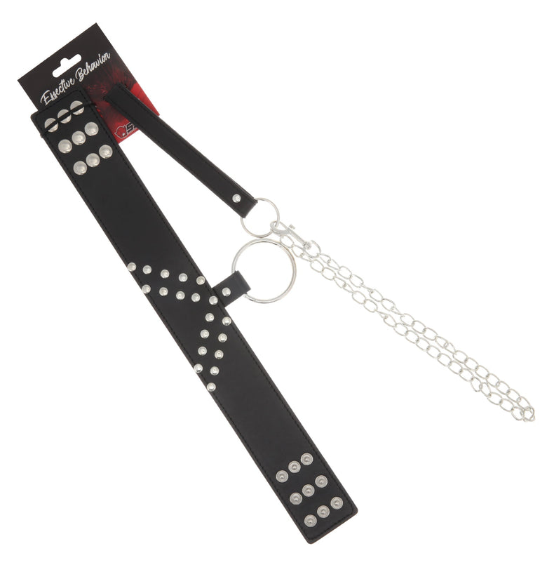 For your sexy bondage play, look the part in this riveted collar by 53X! The wide PVC band features two rows of flat rivets that form a V over the throat and above a 1.5" O-ring which allows to easily attach the matching leash. Adjust the collar to the desired fit with the nickel-free snaps and prepare for whatever the night may bring!