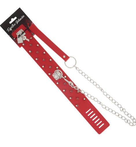 COLLAR RED W/RIVIT SPIKES AND LEASH