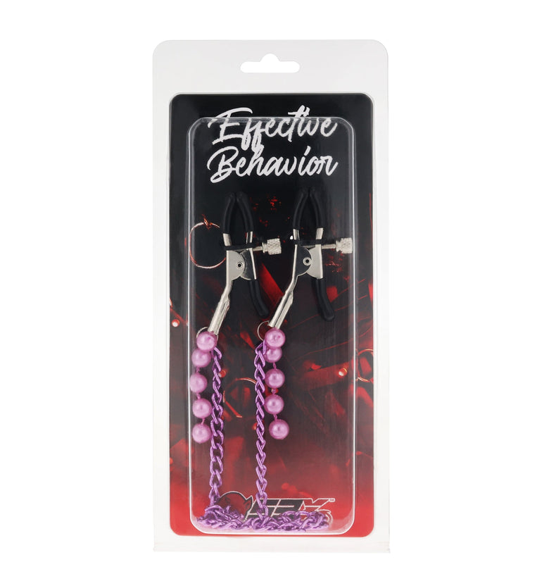 Experience precise control over sensation with the EFFECTIVE BEHAVIOR Purple Metal and Beaded Adjustable Nipple Clamps. Designed for both beginners and experienced users, their adjustable tension allows you to find the perfect balance between gentle pleasure and intense stimulation. Crafted for comfort and durability, these clamps offer a customizable fit that enhances your exploration safely and effectively. One size fits all, making them a versatile addition to your intimate collection.