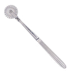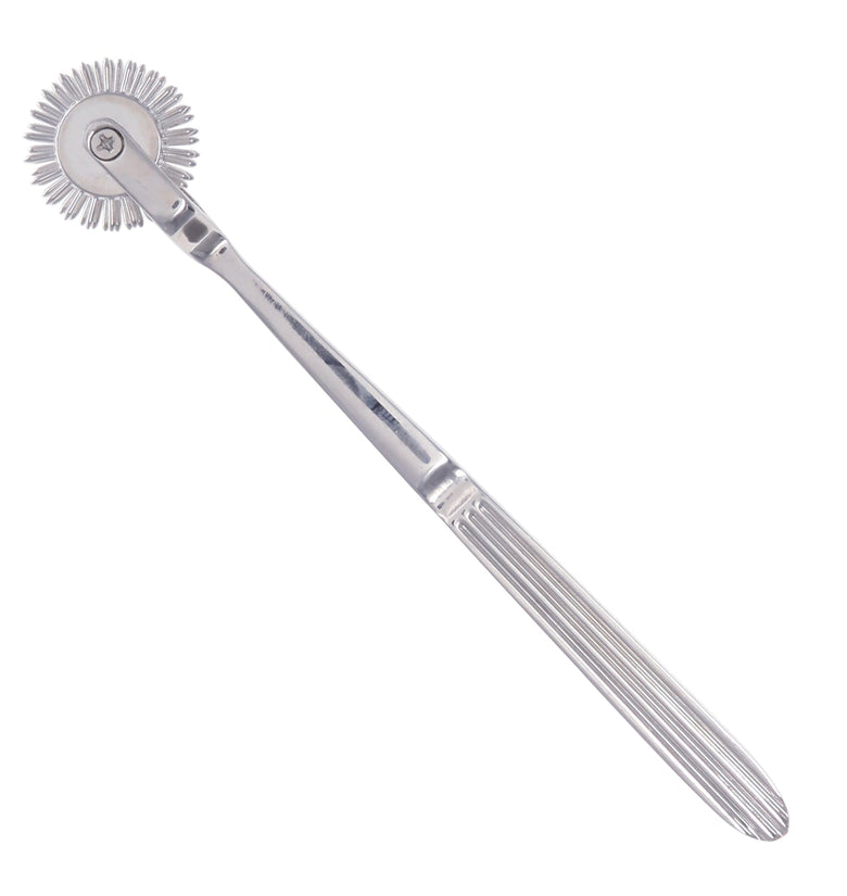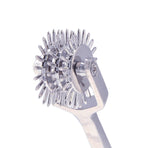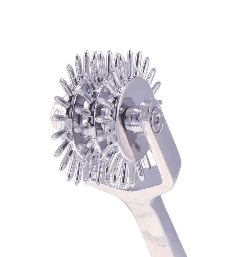 Receive or deliver intense tormenting pleasure with the steel alloy Wartenberg wheel. Three rows of intense spikes ridge the edge of the spinning wheels, while the slender handle is grooved for a perfect grip. Perfect for foreplay, enjoy extreme pleasure from a beautiful and simple design. Enjoy enhanced electro play when you pair this accessory with the Shockgasm Electro Wand and silicone Power Tripper wand attachment!