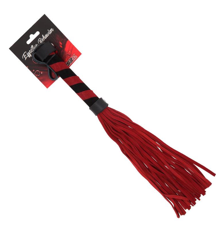 Enjoy thrilling impact play with this short flogger by 53X! Made of suede and genuine leather, a two-toned striping wrap around the handle adds a textured grip, as well as creates for an attractive appearance. The handle is slightly weighted to effectively flick the 9 inch tails for a sharper strike!