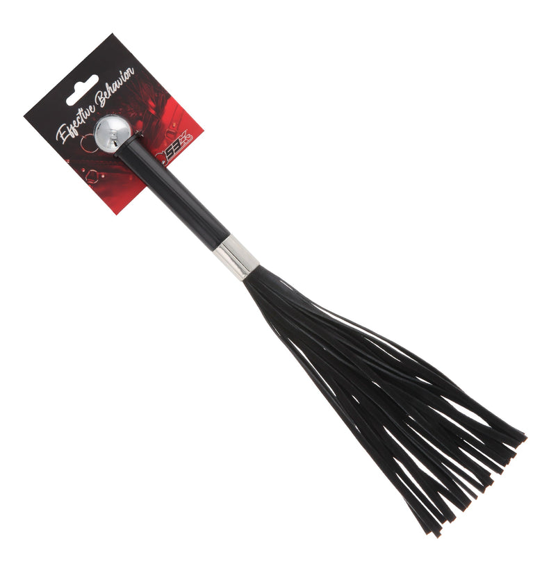 Add to your excitement for sexy BDSM play with this luxurious short flogger by 53X! The handle is made of metal, with a color-coated handgrip, while the lashes are made of genuine leather. The butt of the handle is comfortably weighted in order to inflict pain and pleasure with just a simple flick of the wrist.
