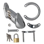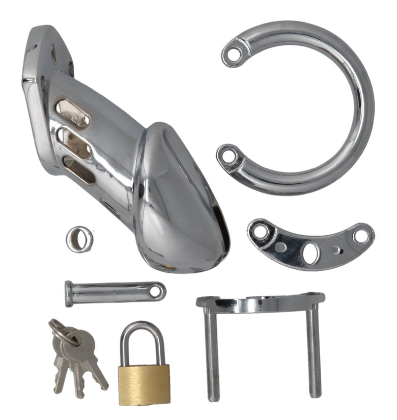 The Humiliation Penis Cage offers a secure locking design combined with a slotted head for comfort and ventilation. Crafted for restraint play, this adult toy ensures controlled wear while maintaining hygiene. Ideal for those seeking a reliable and discreet device to enhance their experience with dominance and submission dynamics.