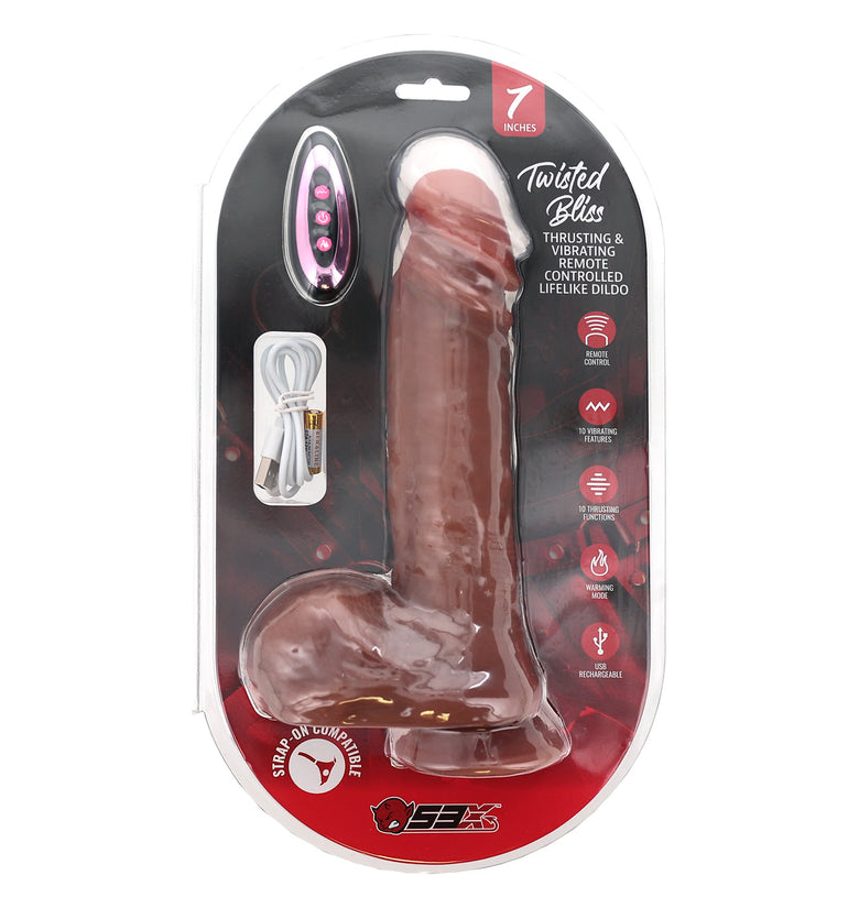 Thrusting & Vibrating Remote Controlled Lifelike Dildo Introducing the Twisted Bliss; a Thrusting & Vibrating Remote Controlled Lifelike Dildo -- the ultimate in pleasu...