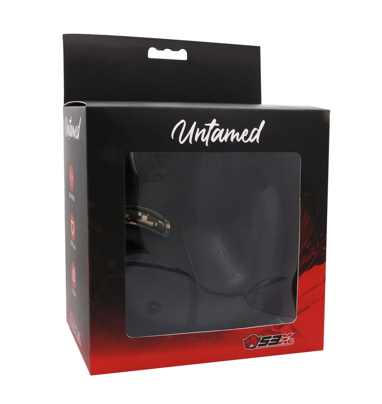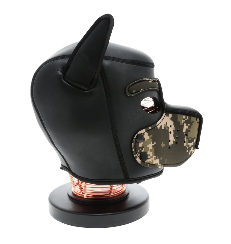 The UNTAMED LRG/XLG Spandex Dog Hood in Black/Camo offers a comfortable, stretchy fit designed for larger sizes. Crafted from smooth spandex, this hood provides a sleek, form-fitting experience that enhances role-play scenarios with its bold camouflage pattern. Ideal for those seeking both style and flexibility, it ensures ease of movement while maintaining a distinctive look.