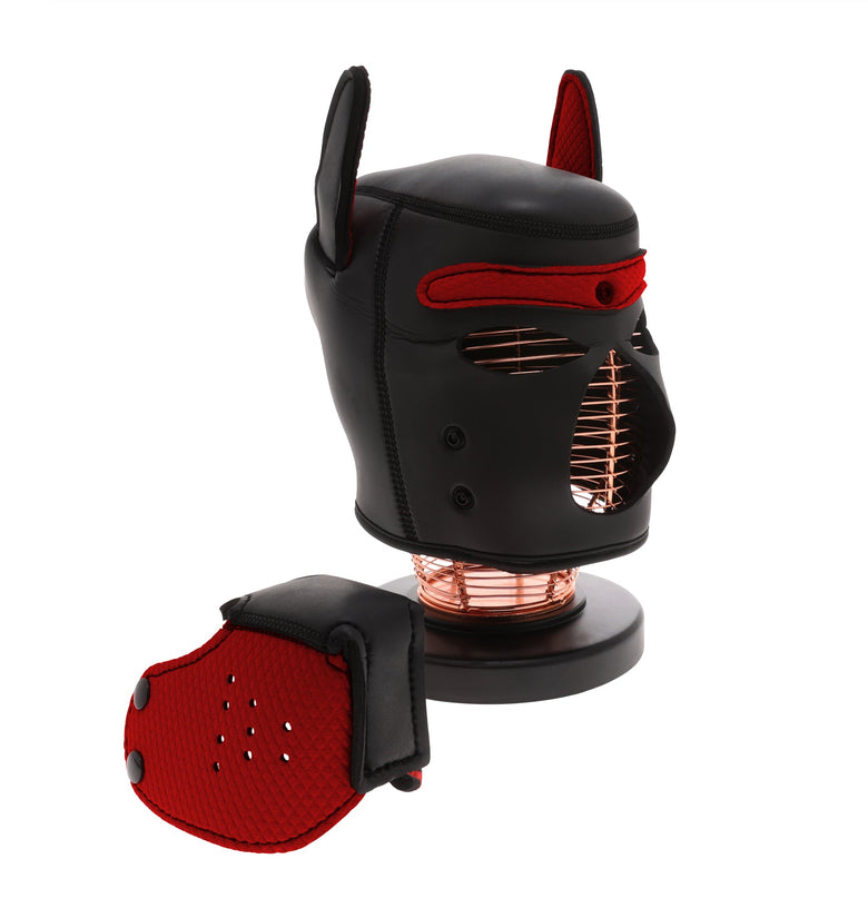 The UNTAMED Small/Medium Spandex Dog Hood in black and red offers a sleek, form-fitting design crafted from stretchy spandex for comfort and flexibility. Ideal for adult role-pl...