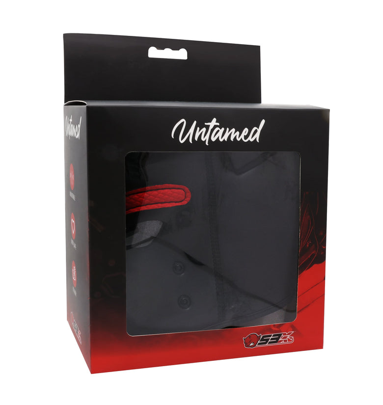 The UNTAMED Small/Medium Spandex Dog Hood in black and red offers a sleek, form-fitting design crafted from stretchy spandex for comfort and flexibility. Ideal for adult role-play, this hood enhances sensory experiences while maintaining breathability. Its bold color combination adds a striking visual element, making it a distinctive accessory for those exploring pet play dynamics.